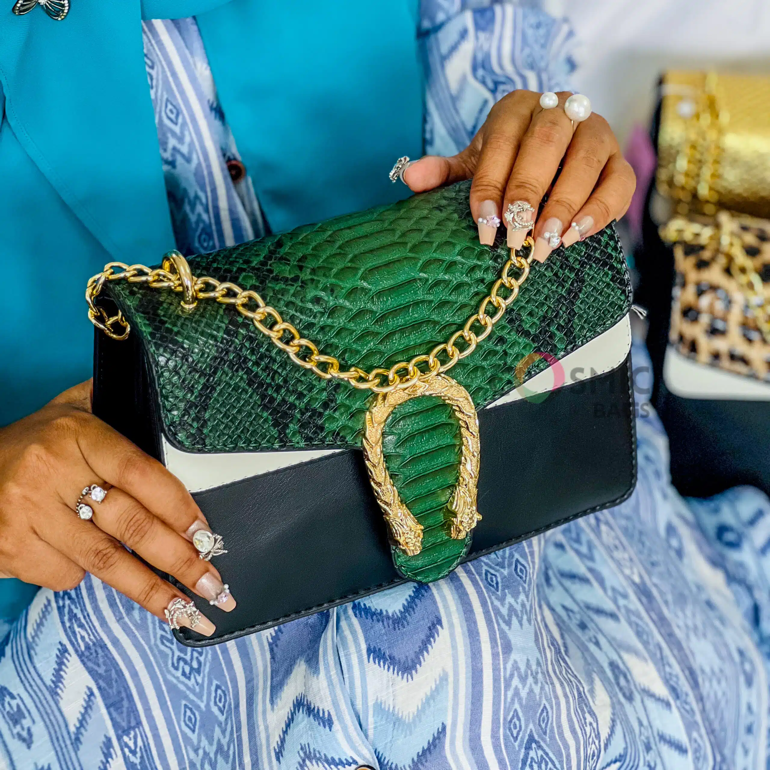 Snake Leather Bag Old Green
